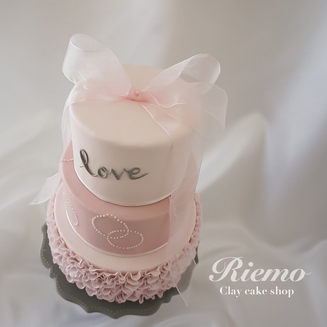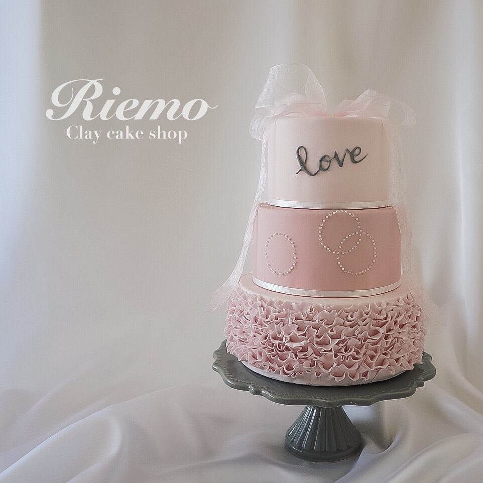 ★くすみピンクのフリルクレイケーキ/3段ケーキ/ウェディング/ウェルカムスペース/店舗ディスプレイ/文字入れ可能/包装・ラッピング無料/【お届け日指定可能】